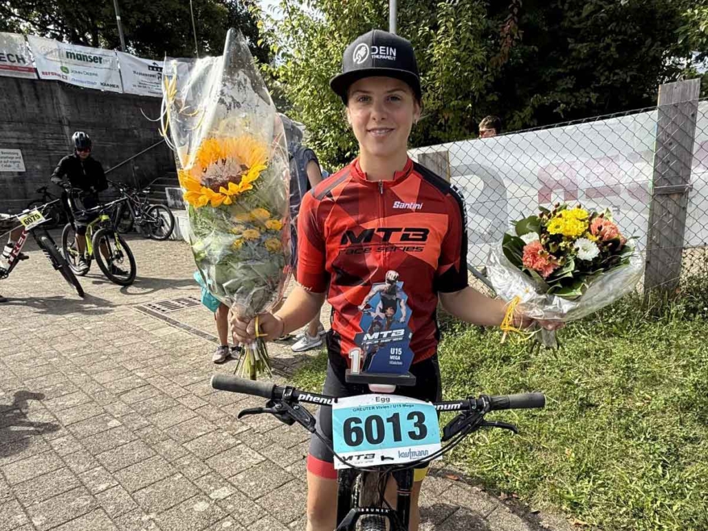 Die Gärtnerei Egli Egg sponserte am MTB Race Series in Egg die Siegersträusse. Nachwuchsfahrerin Vivien Greuter erreichte den 2. Rang in Egg und den 1. Rang in der Gesamtwertung.